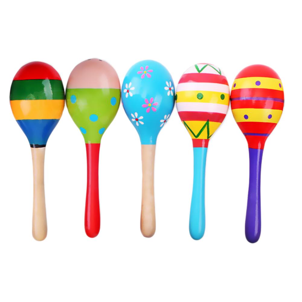 5 PCS Cute Colorful Wooden Maracas Rattle Shaker Baby Child Sound Musical Toys Early Learning Toys Random Color