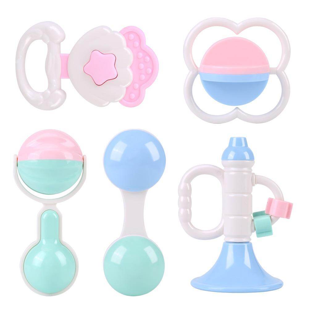 5 ชิ้นเซ็ตทารกแรกเกิดของเล่นเขย่าพลาสติก Teether Teething ของเล่น 0-12 เดือนของเล่นดนตรี