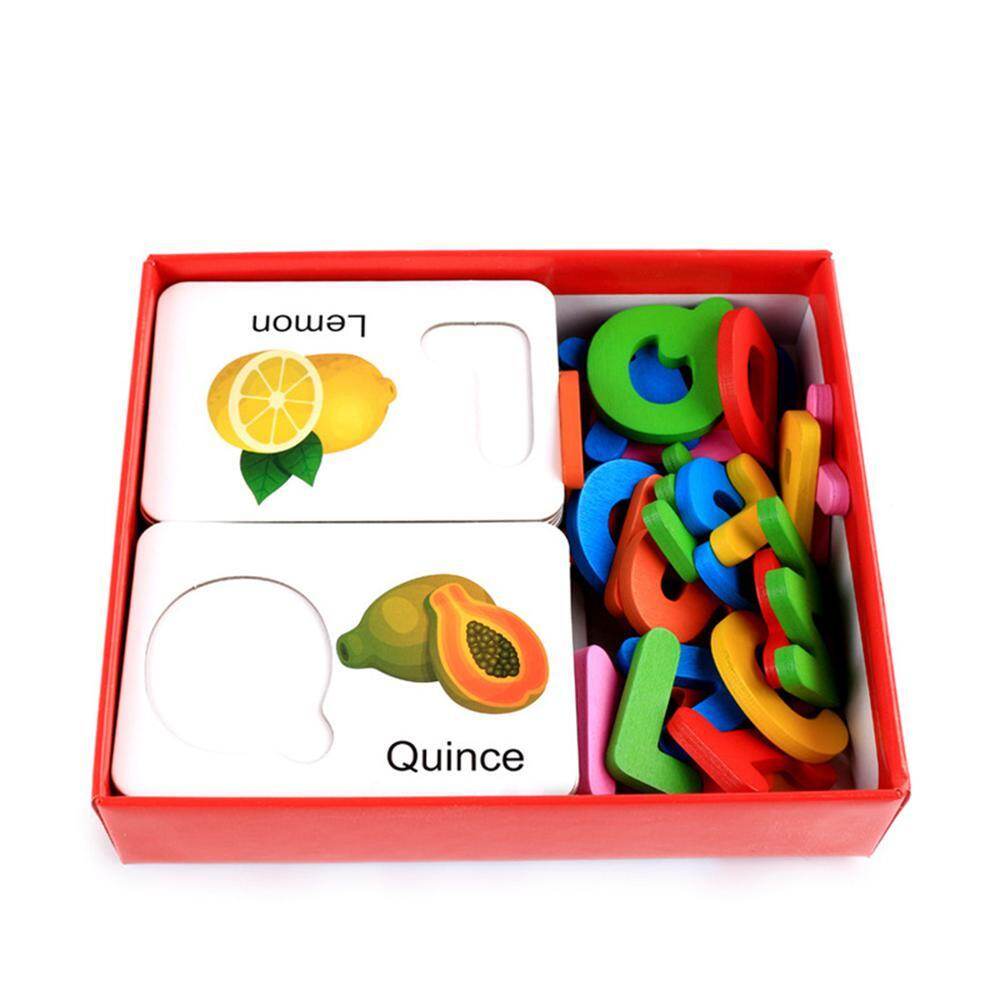 NiceToEmpty 52 ชิ้นไม้การศึกษาเด็กก่อนวัยเรียนเรียนภาษาอังกฤษตัวอักษรเอบีซีการ์ดตัวอักษรความรู้ความเข้าใจของเล่นปริศนาลายสัตว์
